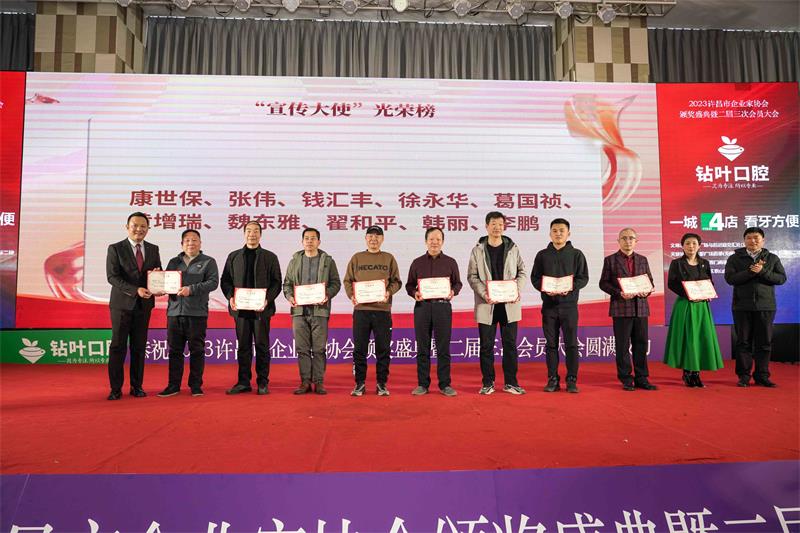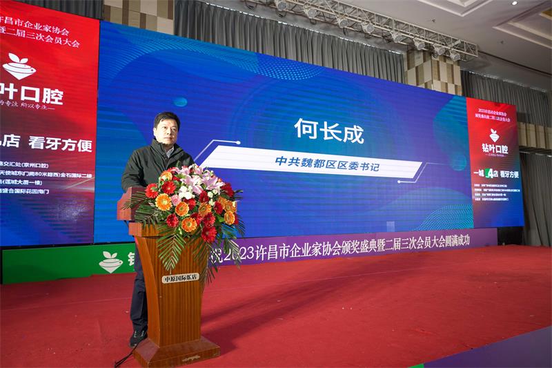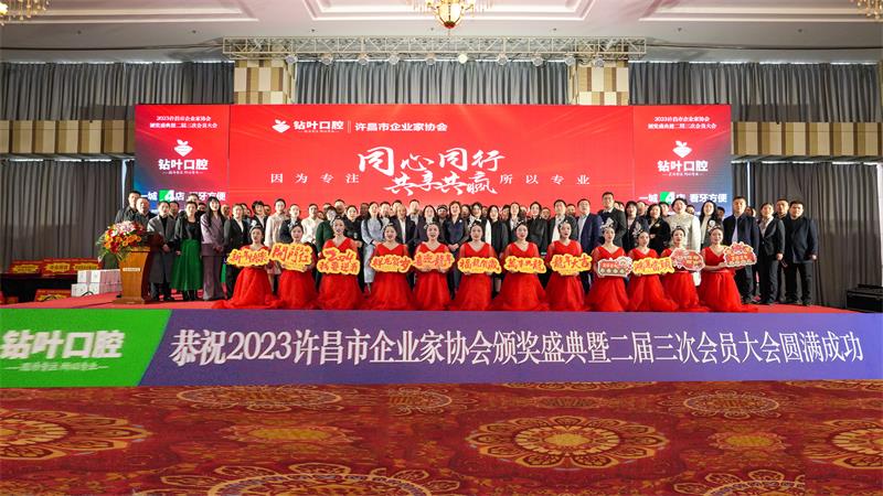 辭舊迎新,歲回律轉(zhuǎn)。揮手告別難忘的2023,昂首跨入充滿希望的2024。1月13日下午,由許昌市鉆葉口腔連鎖總冠名的“同心同行?共享共贏”許昌市企業(yè)家協(xié)會2023年度頒獎盛典暨二屆三次會員大會在中原大酒店百合廳成功召開。協(xié)會邀請了中共魏都區(qū)委、市工商聯(lián)、市發(fā)改委、市黨史和地方志研究室、市民政局、市婦聯(lián)、許昌人才集團、市廣播電視臺、河南映象網(wǎng)、許昌日報社、許昌市商丘商會等相關(guān)部門領(lǐng)導(dǎo)及協(xié)會會員200多人參加了本次年會。