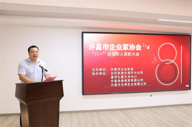 許昌市企業(yè)家協(xié)會黨支部書記何志東宣讀了《許昌市企業(yè)家協(xié)會八一表彰決定》。