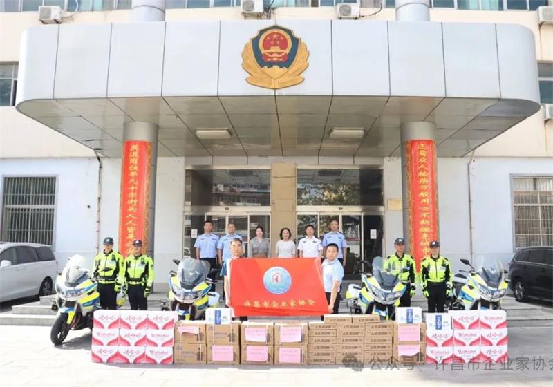 黃玉霞秘書長一行為支隊民輔警贈送了礦泉水、洗衣液等慰問品。她表示在夏季連續(xù)的高溫酷暑天氣下,支隊交通管理工作者堅守一線、查處違法、服務(wù)群眾、保障交通安全,特對持續(xù)堅守崗位的民輔警表達誠摯的慰問和崇高的敬意。呂振杰支隊長代表支隊全體同志向企業(yè)家協(xié)會一行表示感謝。