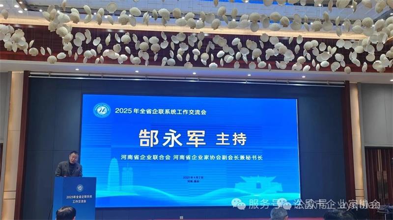 2025年4月2日,由河南省企業(yè)聯合會主辦、鄭州市企業(yè)聯合會承辦的全省企聯系統(tǒng)工作交流會在登封中州華鼎飯店成功召開。河南省企聯副會長田富軍出席會議并作重要講話,副會長兼秘書長郜永軍主持大會。