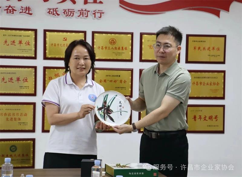 交流結(jié)束后,雙方互贈(zèng)紀(jì)念品。貴陽(yáng)市人民政府駐武漢辦事處向協(xié)會(huì)贈(zèng)送了中共貴陽(yáng)市委、貴陽(yáng)市人民政府定制的精美的陶瓷藝術(shù)圓盤(pán),協(xié)會(huì)回贈(zèng)了具有許昌文化特色的鈞瓷主人杯。此次交流不僅加深了彼此了解,更為今后深化合作奠定了堅(jiān)實(shí)基礎(chǔ)。雙方一致表示,將以此為契機(jī),建立長(zhǎng)效溝通機(jī)制,推動(dòng)資源共享,實(shí)現(xiàn)互利共贏。